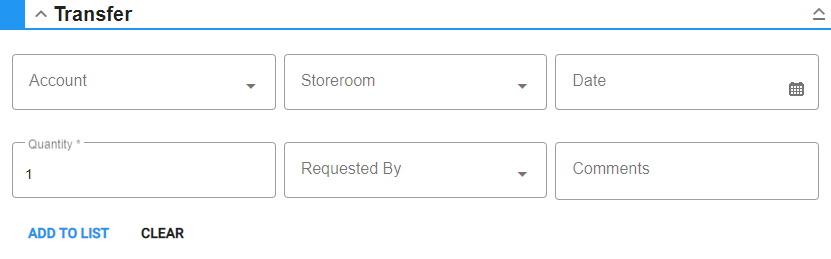 - If you would like to add other materials to this transfer transaction, tap Clear in the Transfer panel to clear the fields, then add another material to the list.