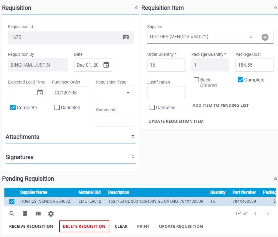To remove a requisition, either enter the requisition ID or perform a requisition search.
