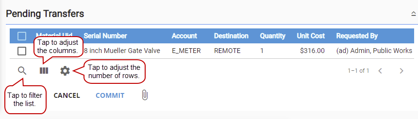- Tap Add to List to add the materials to the Pending Transfers panel.