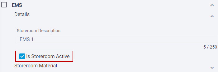 5. Clear the Is Storeroom Active check box in the Details section to make the storeroom unavailable to users.