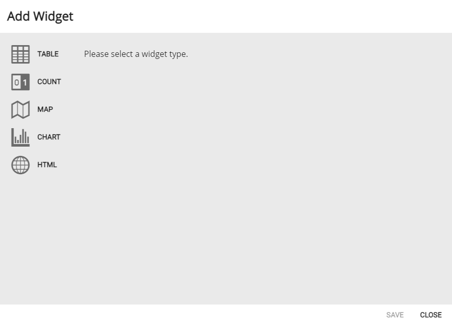 NOTE: If the Count or Chart widget is selected, you can select Numeric, Currency, or Percent for the Numeric Type.