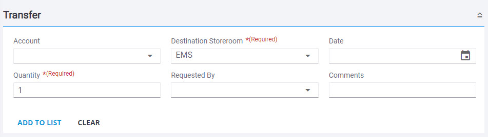 • Material must be associated to the storeroom it's being transferred to. See Add Material to a Storeroom for more information.