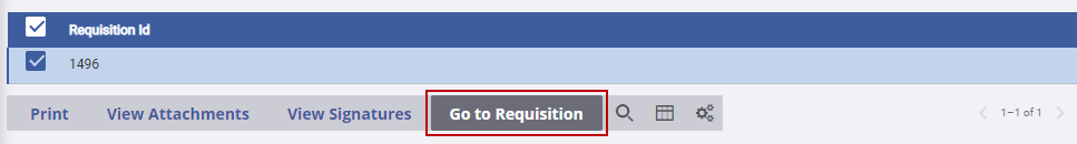 - Perform a requisition search. See Search for a Requisition Transaction for more information.