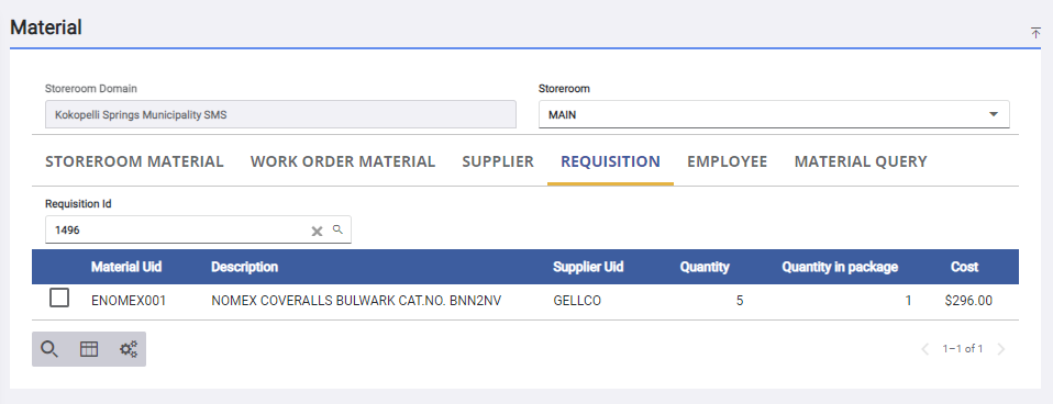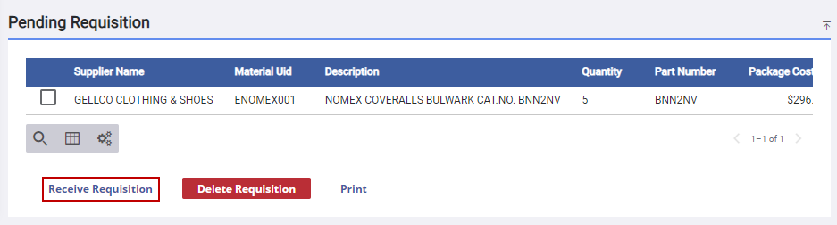 NOTE: Only material not marked complete is received. To check if the material is complete, select the material in Pending Requisition panel. The Complete check box is selected in the Requisition Item panel if the material has already been received.