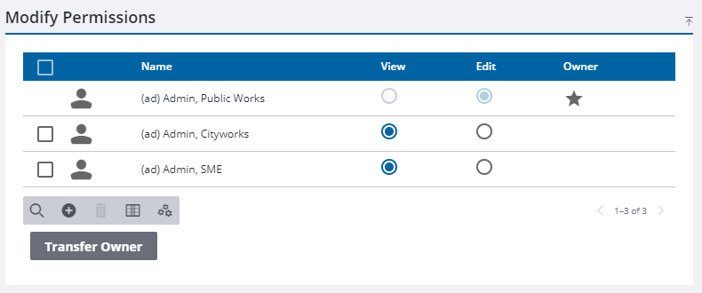 1. Tap Transfer Owner on the Modify Permissions panel.