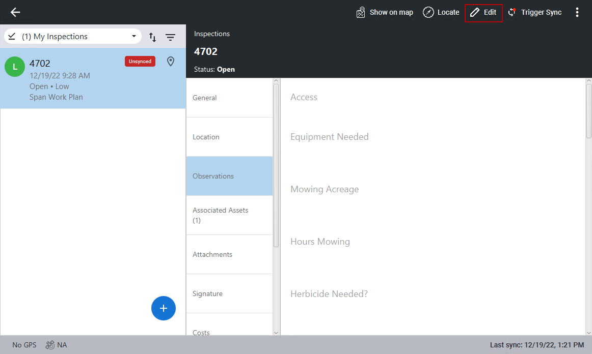 - Click Observations, then click Edit in the top-right corner. If you are already in edit mode, you don't need to click Edit.