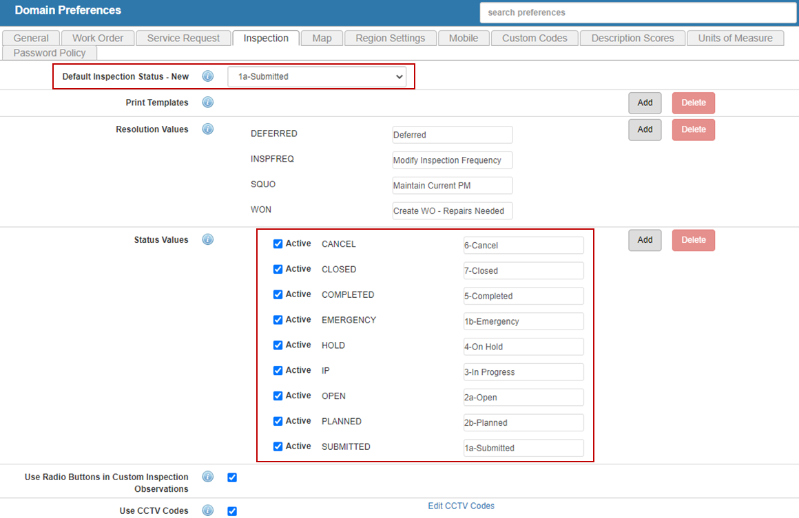 Inspection status values must be defined in Designer on the Inspection and Mobile tabs.