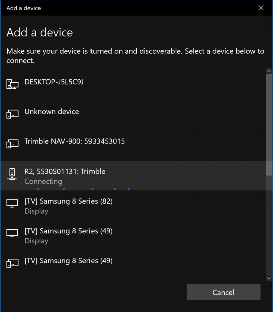 Connect the Trimble R2 GNSS Receiver with the Trimble T10 or Windows 10 Tablet