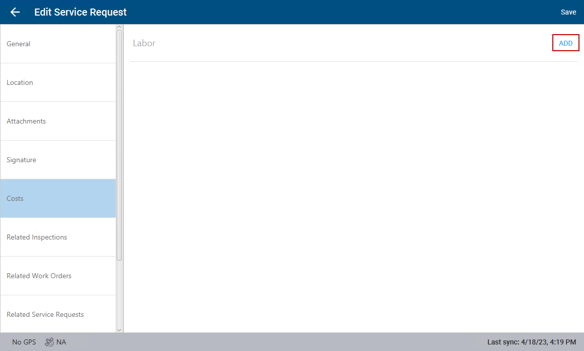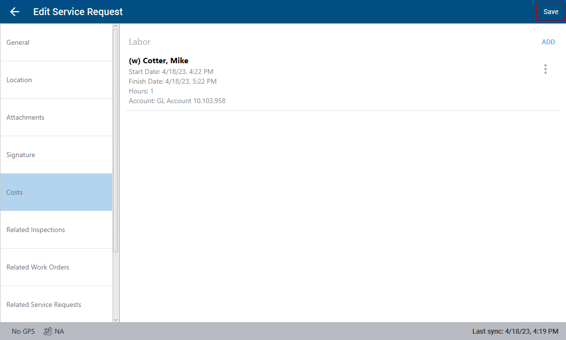 - Click the Hours field and enter the number of hours of labor that were performed.
