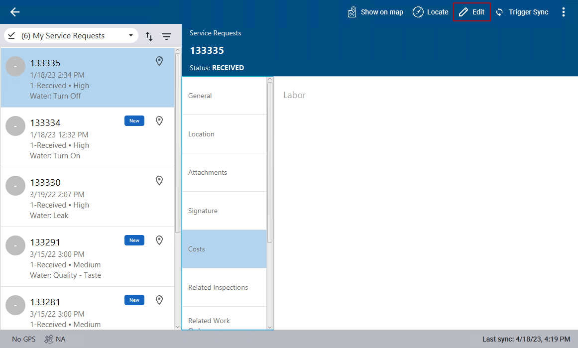 - Click Costs, then click Edit in the top-right corner. If you are already in edit mode, you don't need to click Edit.