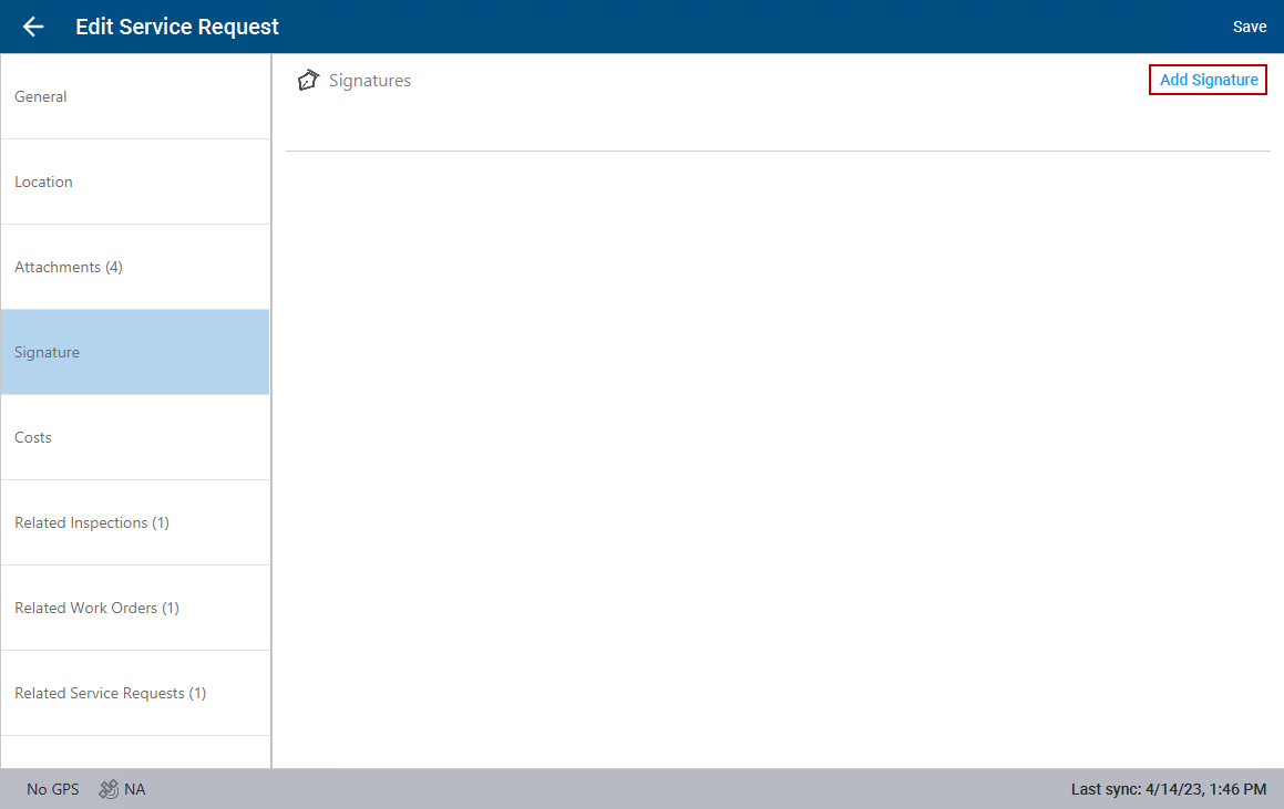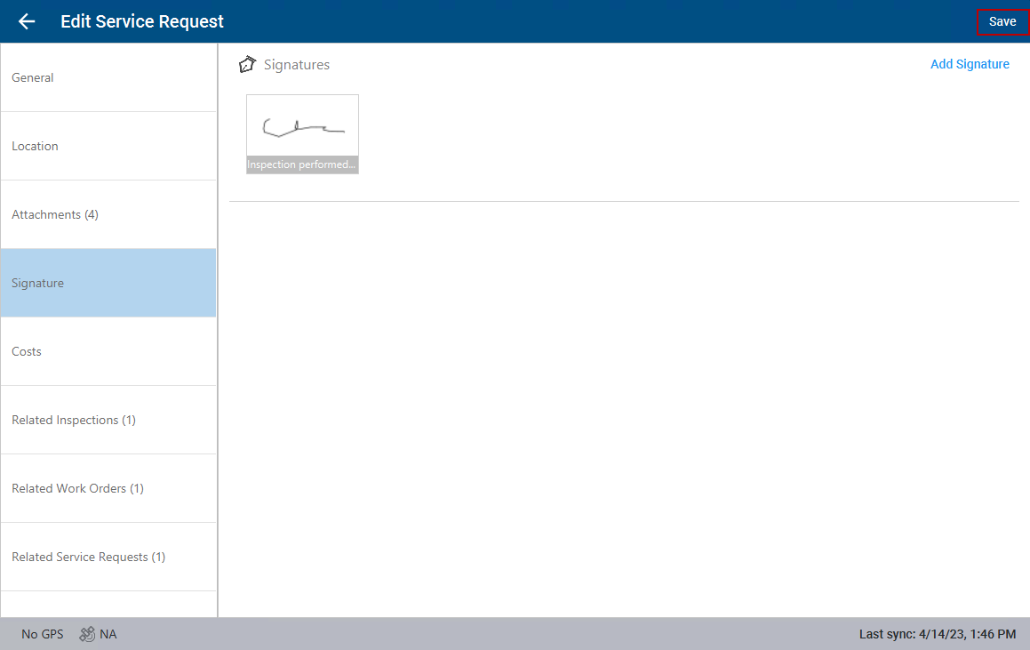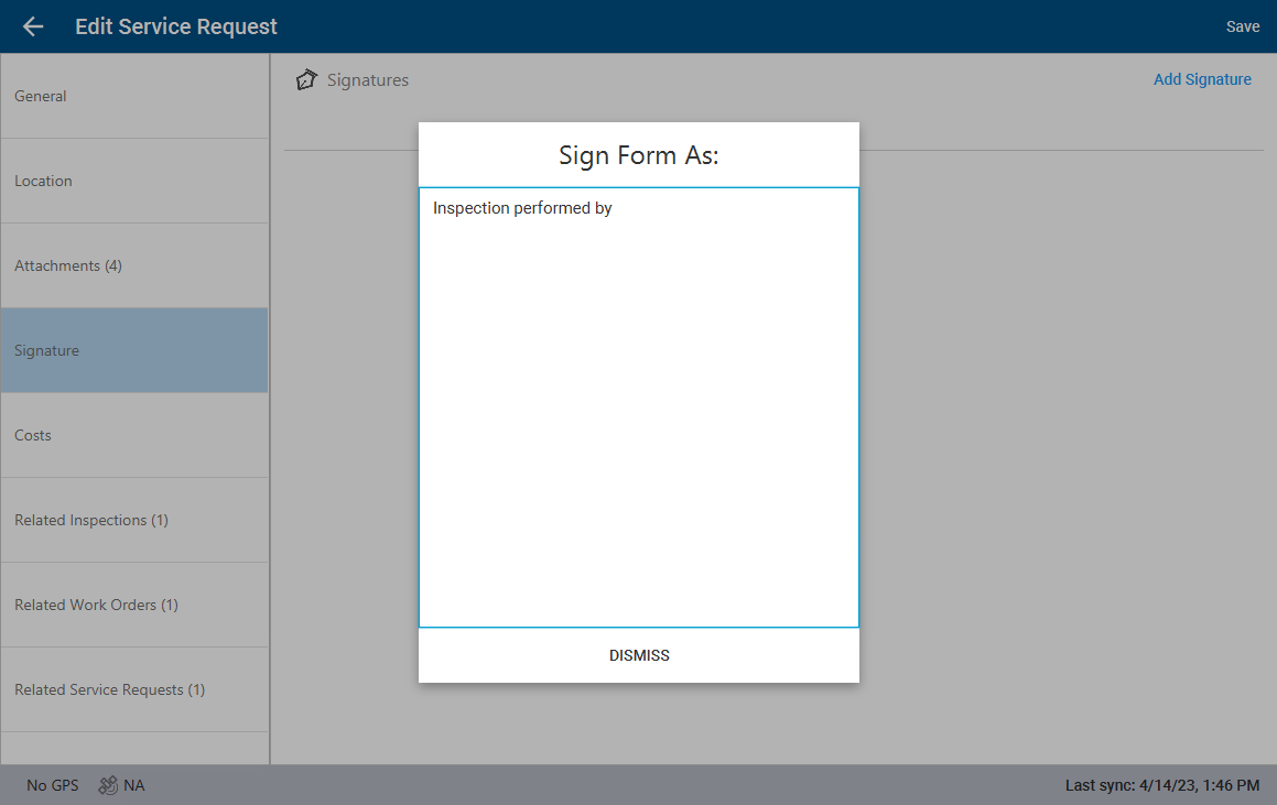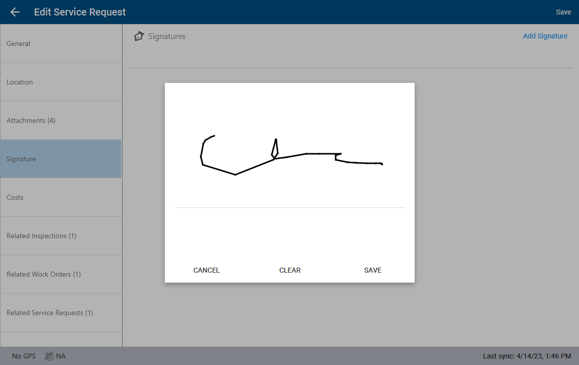 Signatures can be added to service requests.