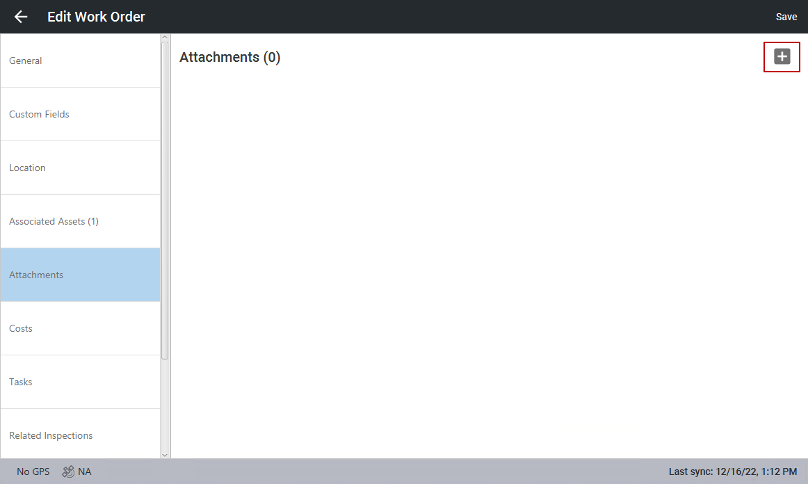 - Once you have marked up the attachment or if you don't want to mark up the attachment, click Save to save the attachment to the work order.