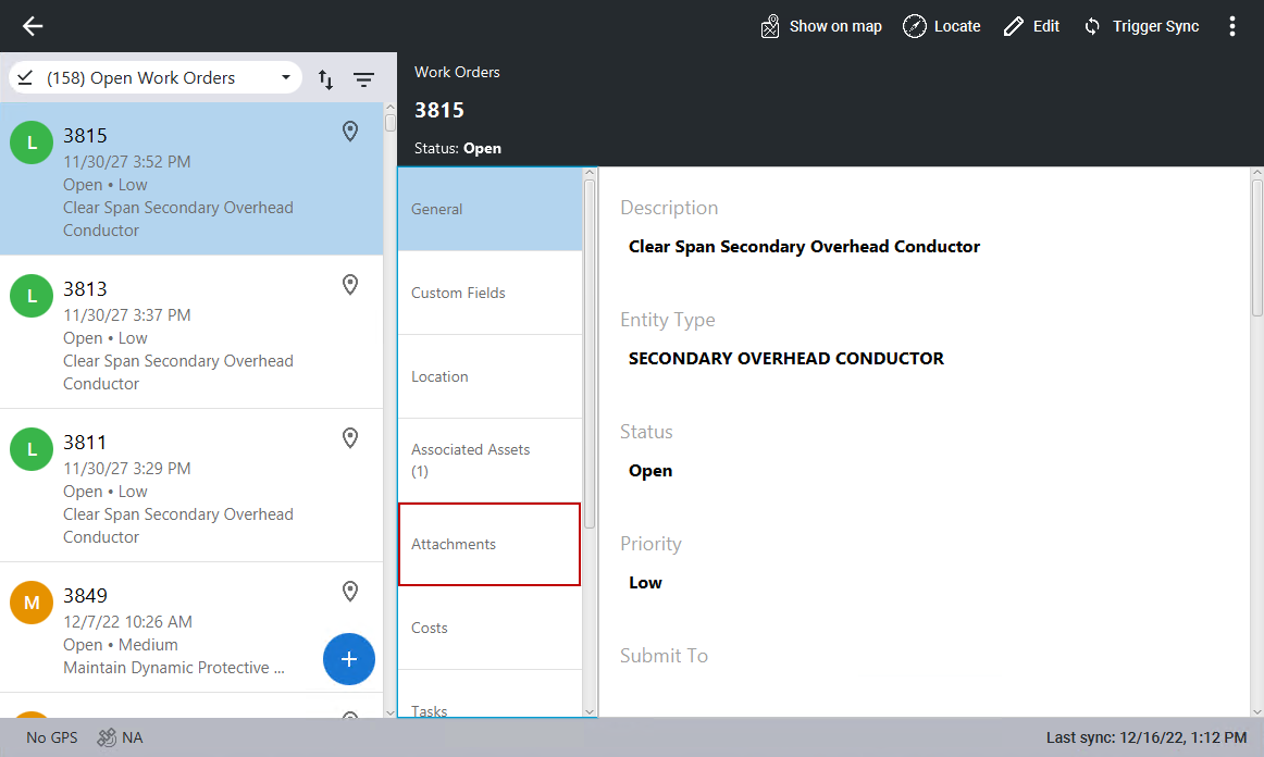 Attachments can be added to work orders in the Trimble Unity mobile app and they will appear in Cityworks.