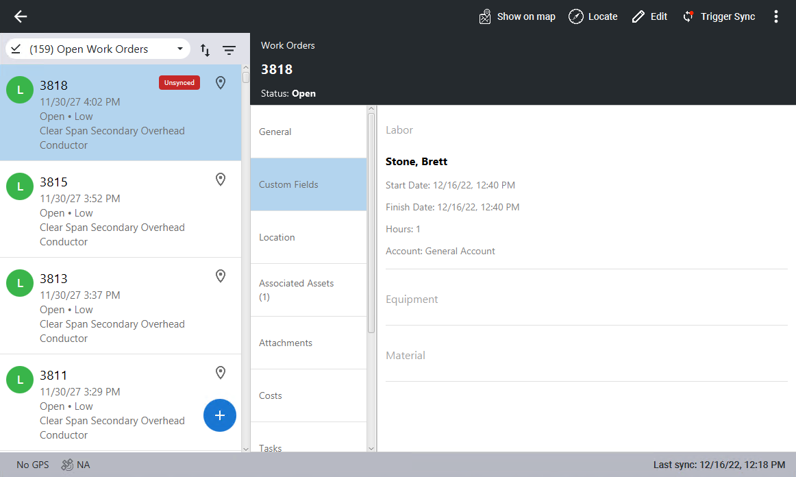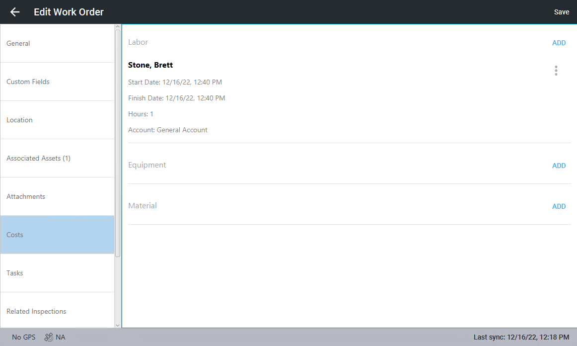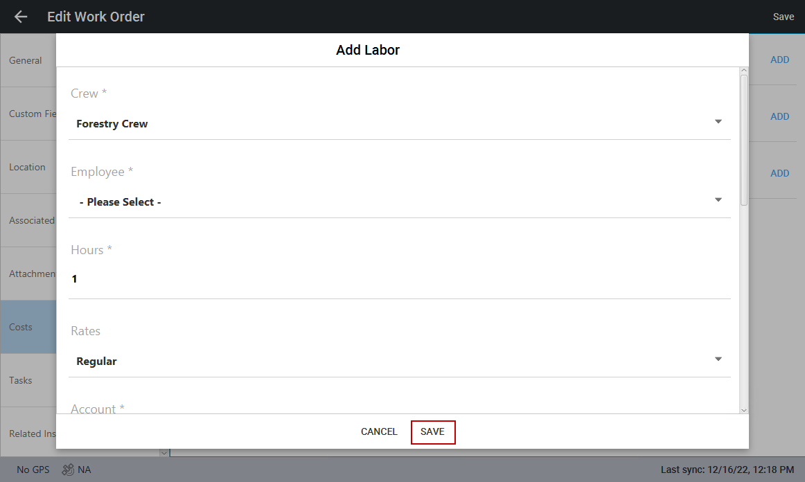 - Click the Hours field and enter the number of hours of labor that were performed.