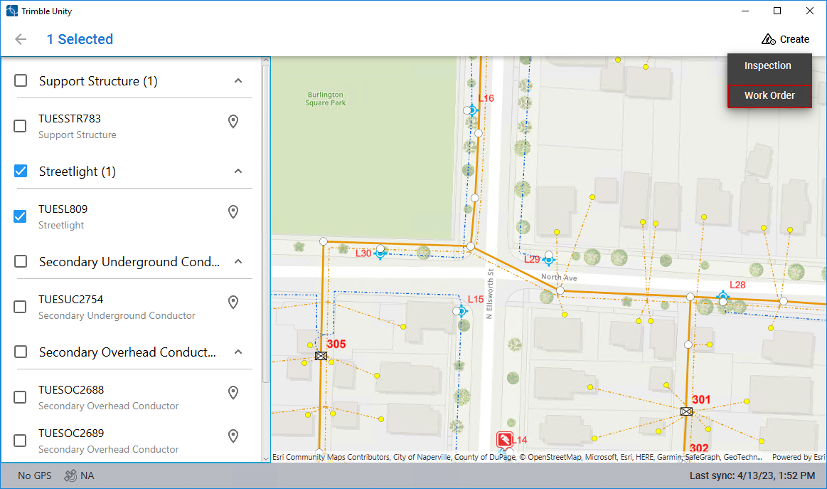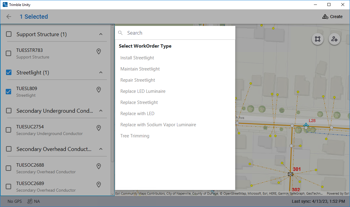 Work orders can be created from the Trimble Unity mobile app.