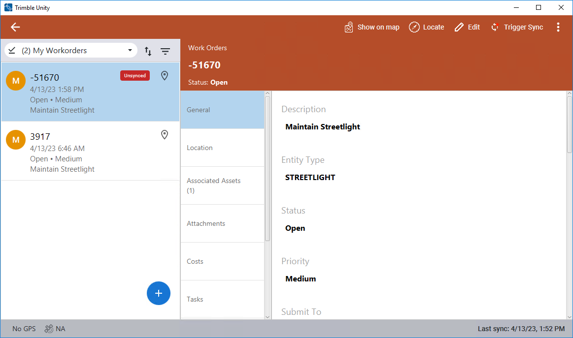 - Click Trigger Sync to sync the work order.
