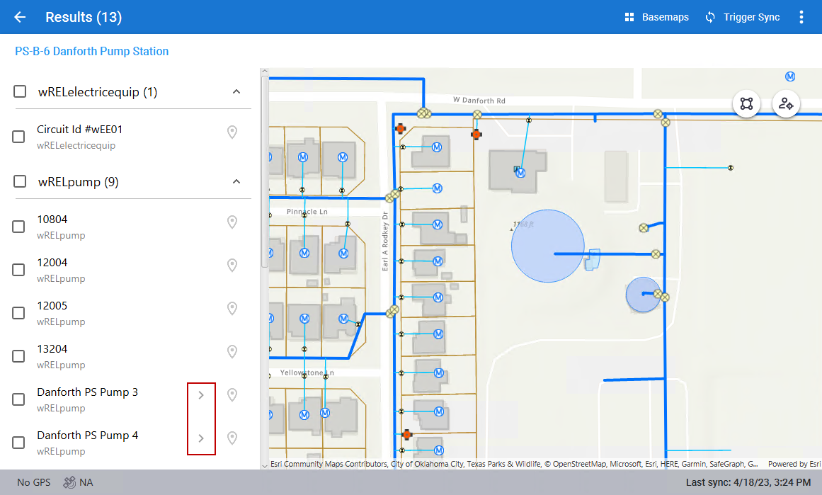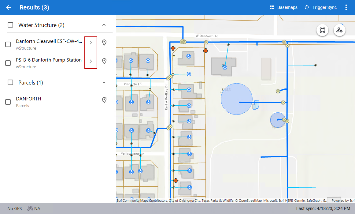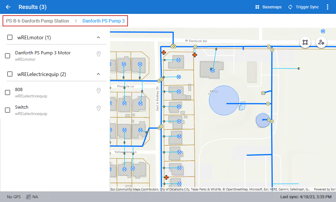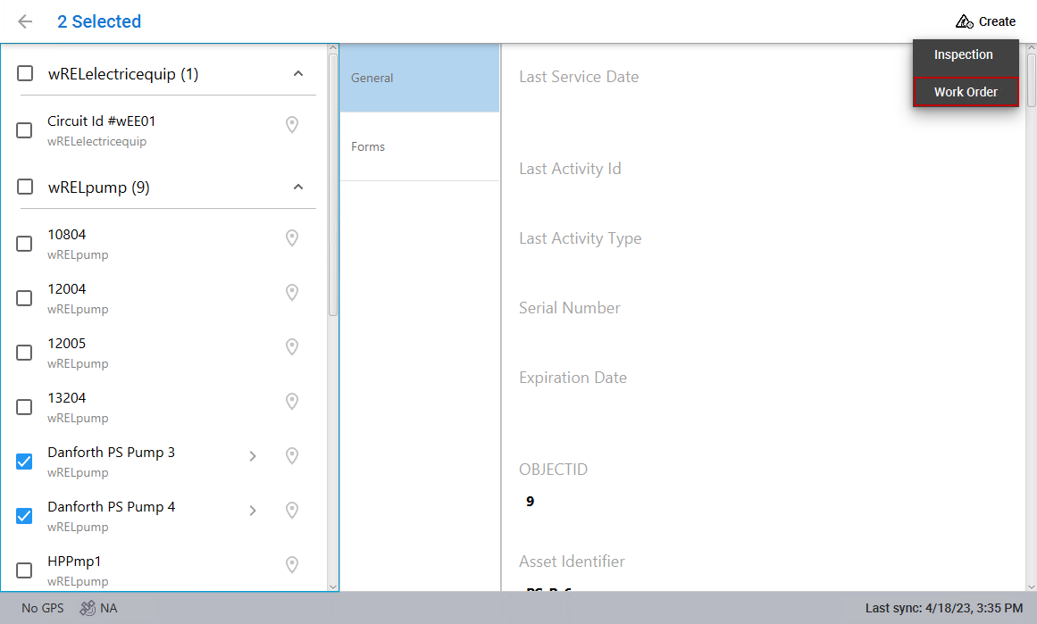 - In the Results list, select the desired related object or non-spatial asset. If multiple assets are selected, they will all be attached to one work order.