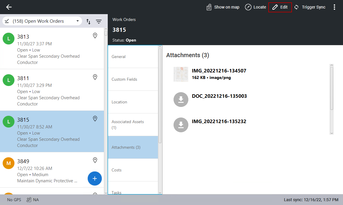 - Select a work order from the list.