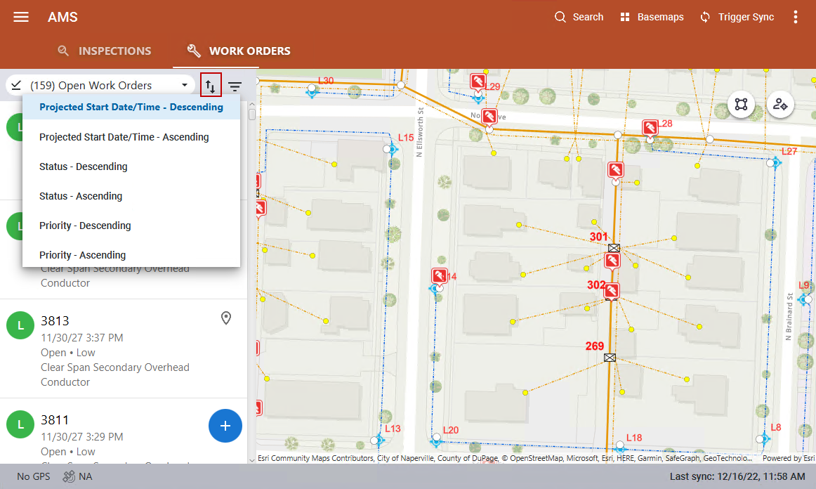 Work orders can be sorted by projected start date/time, status, or priority.