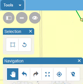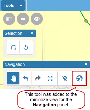 Some map tools, like the Selection and Navigation tools, appear in panels on the map. These panels can be minimized to show the basic or most needed tools. Complete the following to customize which tools will appear when you minimize the Selection and Navigation panels:
