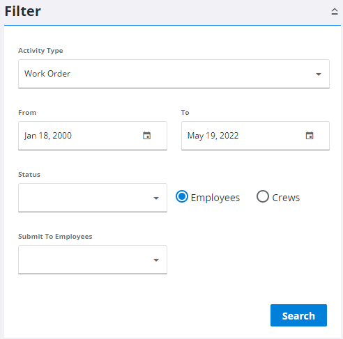 If you don't select a status or any employees or crews, all employees and their work activities will display. If you select employees, only those employees and their work activities will display.