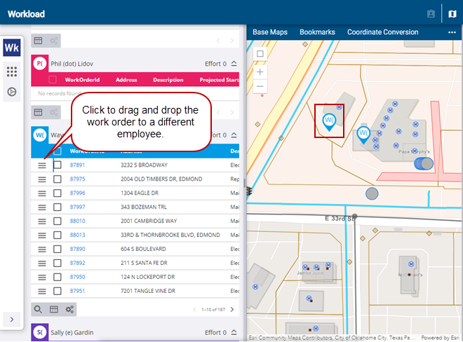 You can quickly assign work orders by dragging and dropping them to an employee. Since drag and drop does not work on mobile devices, this method is recommended for desktop devices.