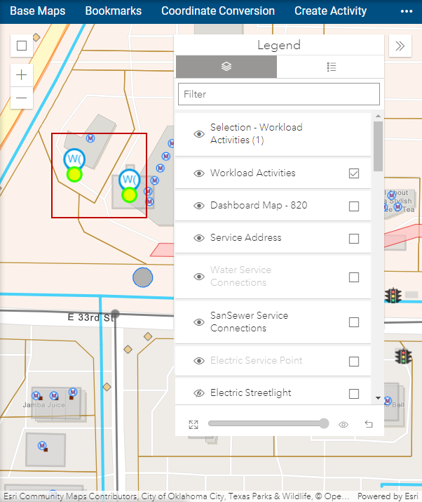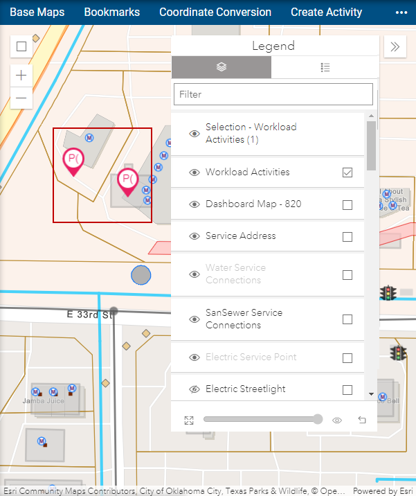 Work activities with a valid address are visually represented on the map with a map pin. The work activities can be assigned to an employee from the map.
