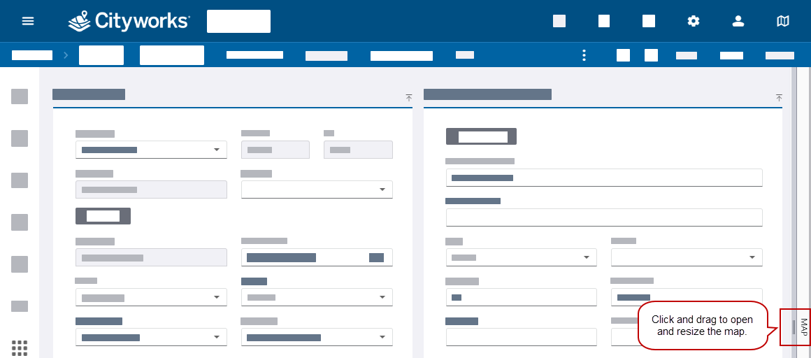 1. From the work management window, click and drag the slider bar. This opens the map and allows you to size the map as needed.