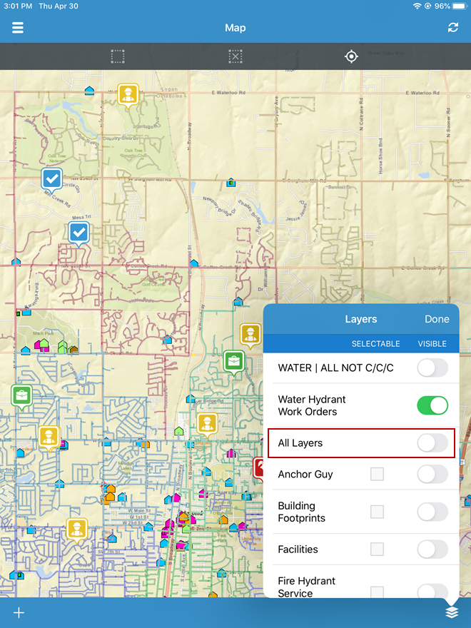 - To make all layers visible at once, tap or drag the All Layers switch to the right.