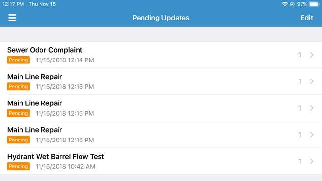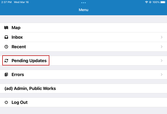 The number of pending updates also displays as an icon badge on your Cityworks app icon.