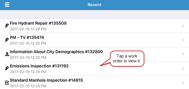 - Tap a work order icon on the map, then tap the arrow on the description that displays.