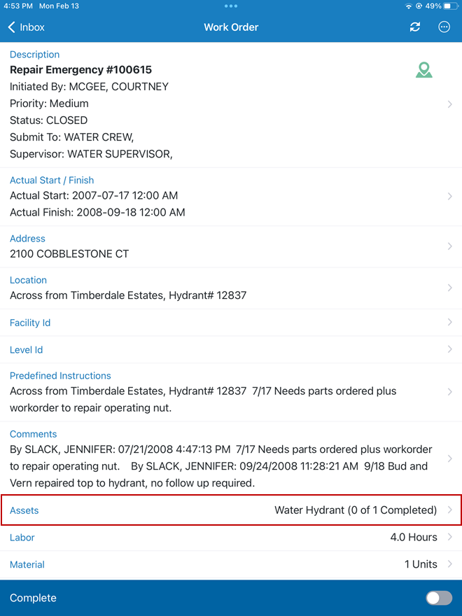 - Scroll and make the edits for the existing feature, then tap the check mark.