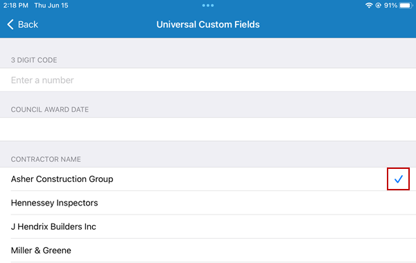 1. Tap the check mark to clear a selected field.