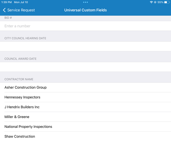 2. Tap Universal Custom Fields to view and edit universal custom fields.