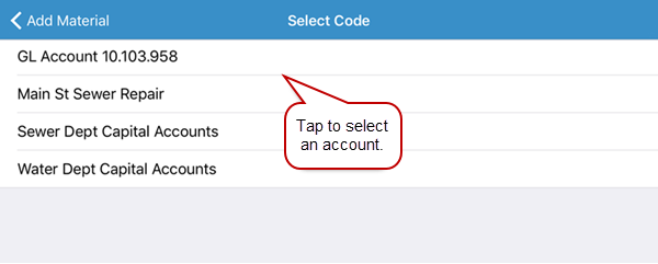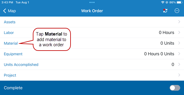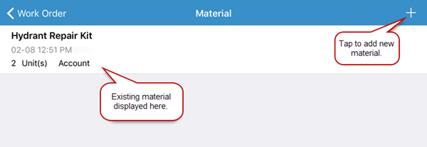 2. Tap Material to add material to the work order.
