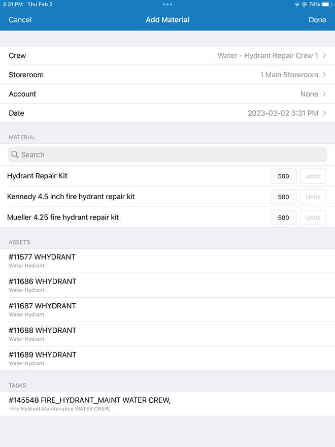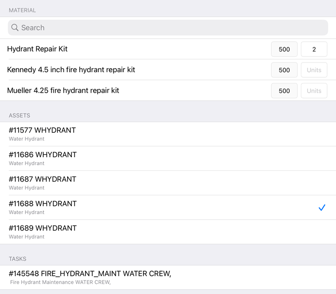 1. Tap the Assets or Tasks you want to associate the material to.