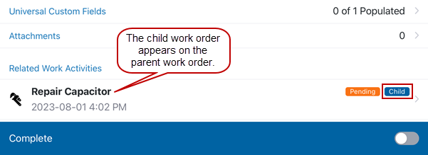 Unattached work orders are not associated to an asset and can be created while working offline. It is recommended that all unattached work orders are eventually attached to an asset. See Attach an Asset to an Existing Work Order for more information.