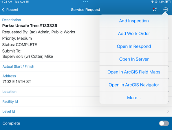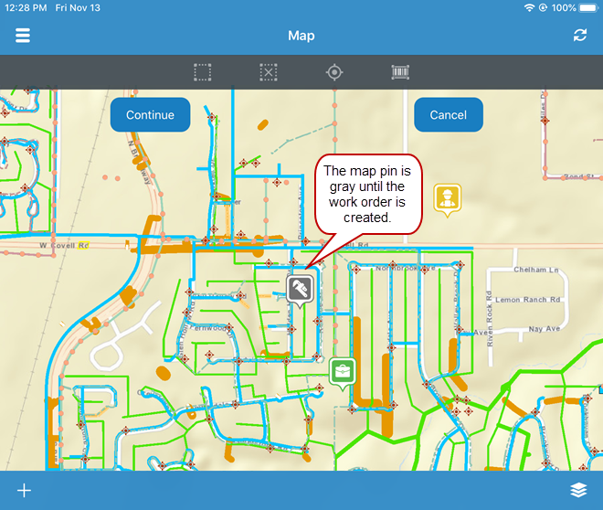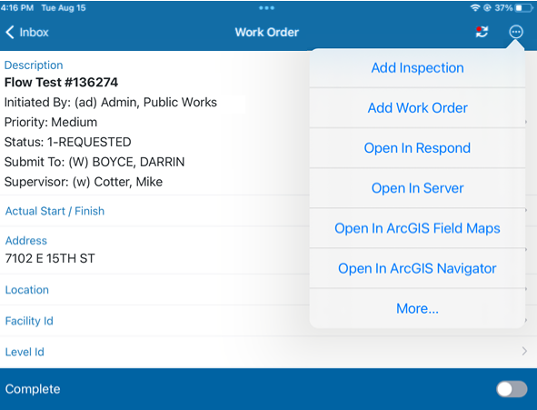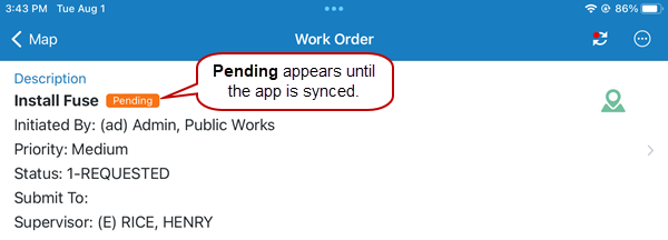 IMPORTANT: Make all desired changes to the new work order before syncing your device, as it does not appear in the app unless the work order is included in a saved search or query that has been added to your mobile inbox. See Add Saved Searches to the Mobile Inbox in the Designer Office Companion 23 Guide, Enable Queries for the Mobile Inbox in the Respond 5.3 Guide, and Add Queries to the Mobile Inbox in the Admin 3.3 Guide for more information.