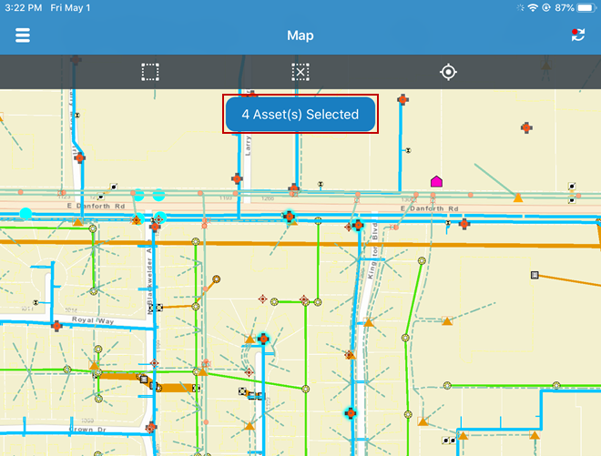 1. Return to the map. Asset(s) Selected displays the updated number of assets.
